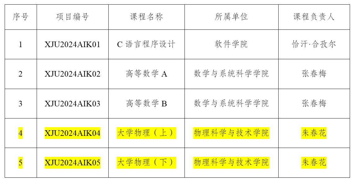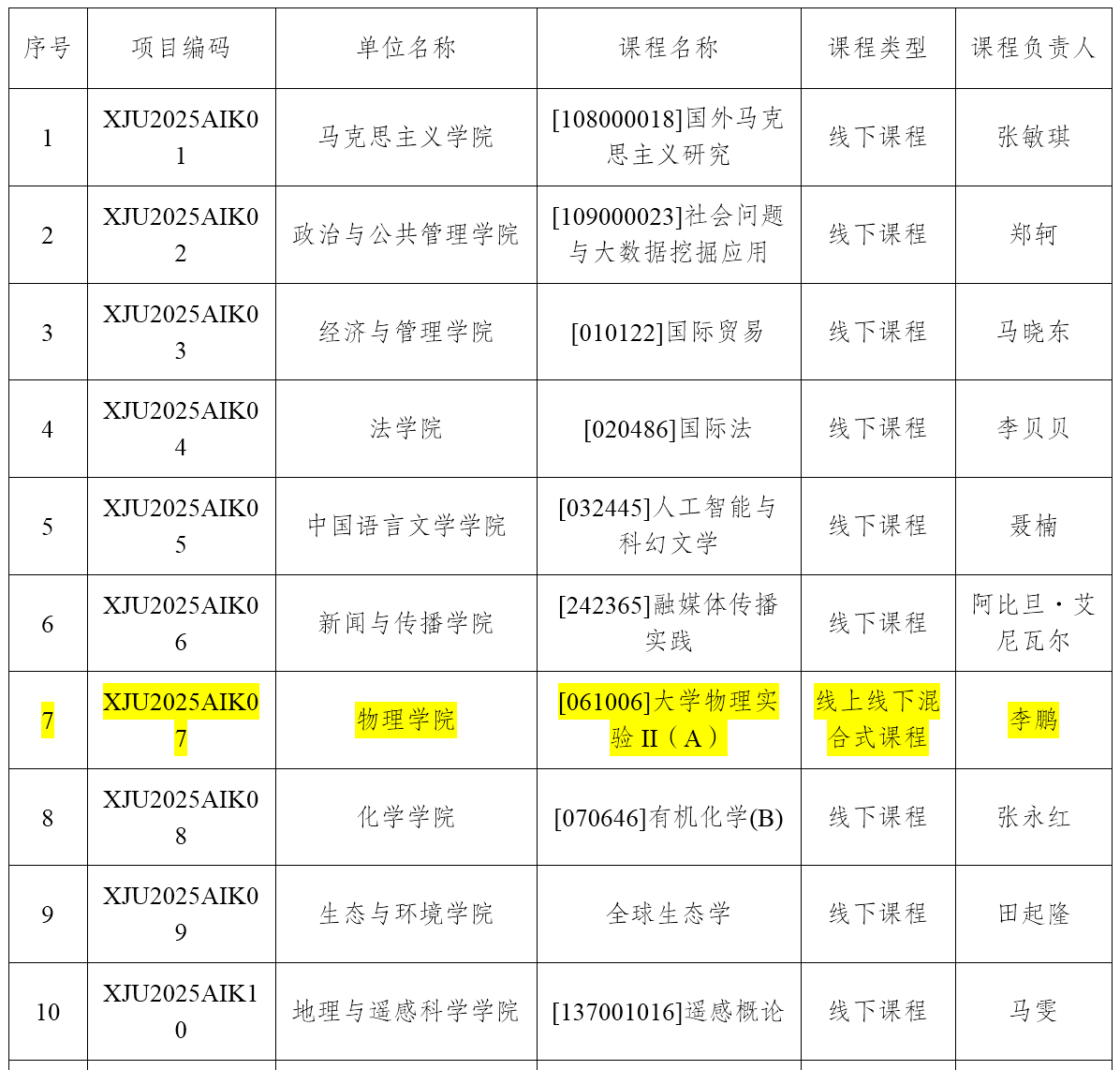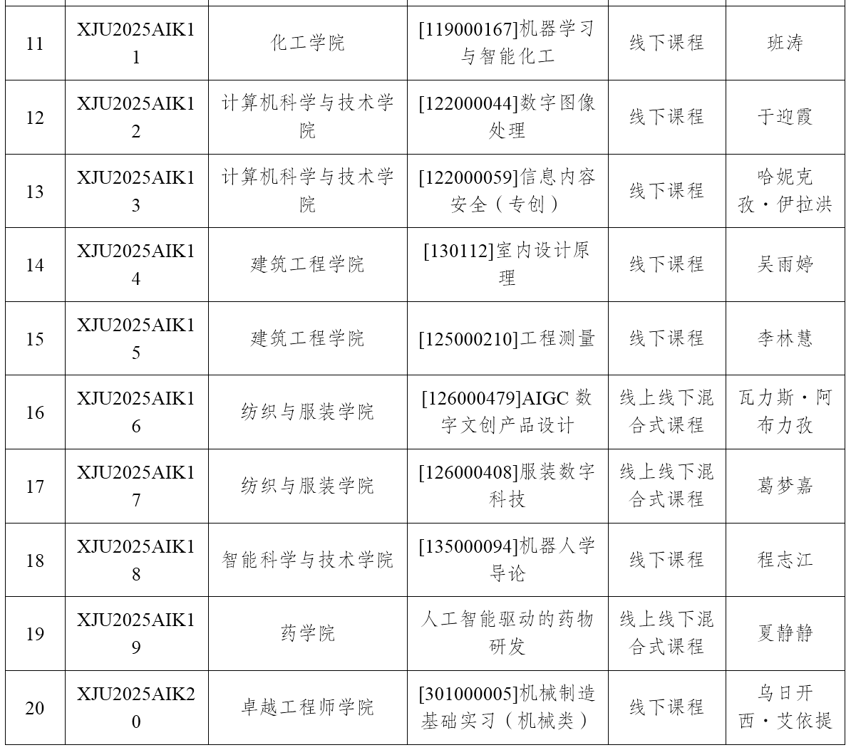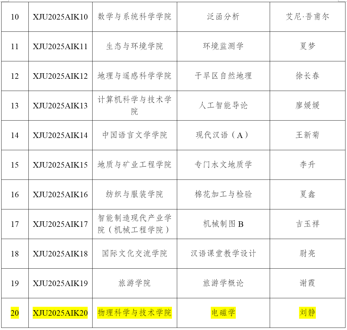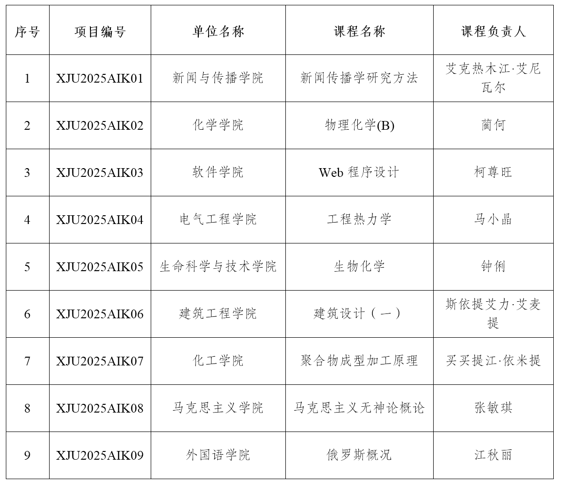 新疆大学 2025 年“人工智能+”课程建设项目立项名单