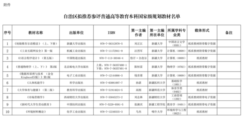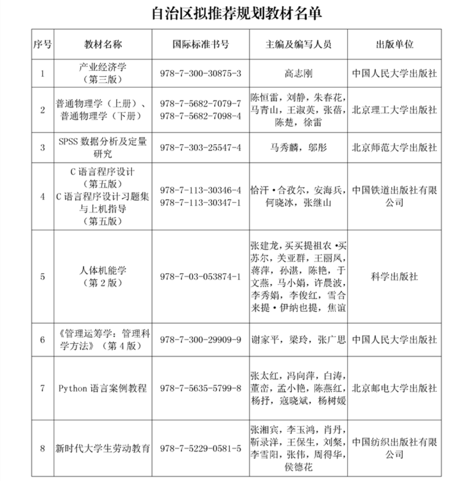 近年来,学院教材建设工作成效显著。《普通物理学(上册)》《普通物理学(下册)》由北京理工大学出版社出版发行,《普通物理学(上册)》《普通物理学(下册)》被学校及自治区推荐申报第一批“十四五”国家级规划教材;《普通物理学(第2版)(上)》《普通物理学(第2版)(下)》由北京邮电大学出版社出版发行,《普通物理学(第2版)(上)》《普通物理学(第2版)(下)》被学校及自治区推荐申报全国第二届优秀教材建设奖、第2批“十四五”国家级规划教材;《大学物理实验》由北京大学出版社出版发行;《物理综合》由电子工业出版社出版发行。