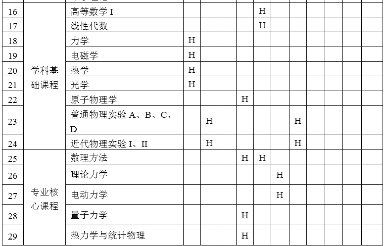 培养目标3:掌握外语、计算机及信息技术等方面的知识,了解物理学的理论前沿、发展动态及相关领域的基本知识和具备处理物理问题及相关问题的能力。