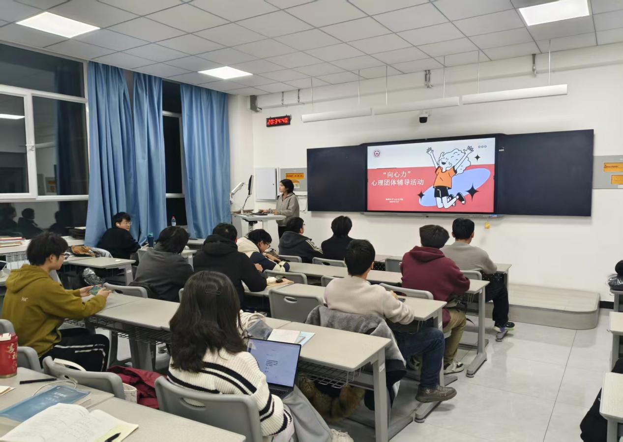 为帮助学生缓解期末考试焦虑,掌握科学的压力调节方法,筑牢心理健康防线,我院于 2025 年 12 月 30 日开展 “向心力” 系列心理团体辅导活动,本次活动以 “‘焦虑’使用说明书 —— 大学生考试压力自助指南” 为主题,由各班心理委员牵头组织,全体学生积极参与。