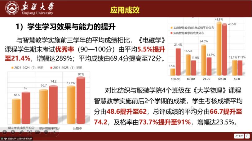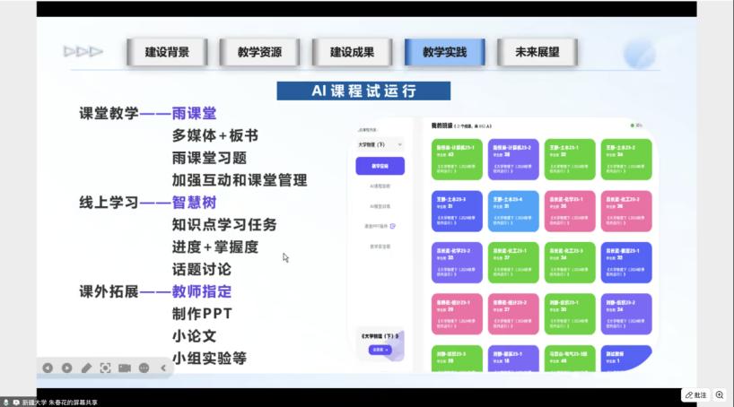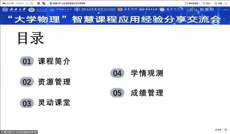 来自新疆大学和昌吉学院的5位老师先后分享了大学物理智慧课程应用经验。