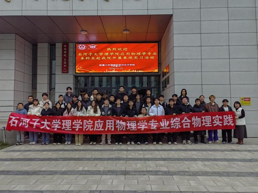 为深入落实教育部 “实践育人” 工作要求,充分发挥高校学科资源辐射作用,深化区内外高校物理学科教学协同与学术交流,近日,新疆大学物理科学与技术学院接待石河子大学理学院应用物理学专业师生一行,成功开展综合物理实践活动。作为新疆高校物理学科领域的领军单位,学院以完善的教学体系、先进的科研平台和雄厚的师资力量为支撑,为来访师生打造了一场兼具理论深度与实践价值的学术交流盛宴,助力大二学子打通 “课堂理论” 与 “学科应用” 的衔接通道,深化对物理专业发展路径的认知。