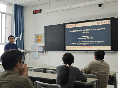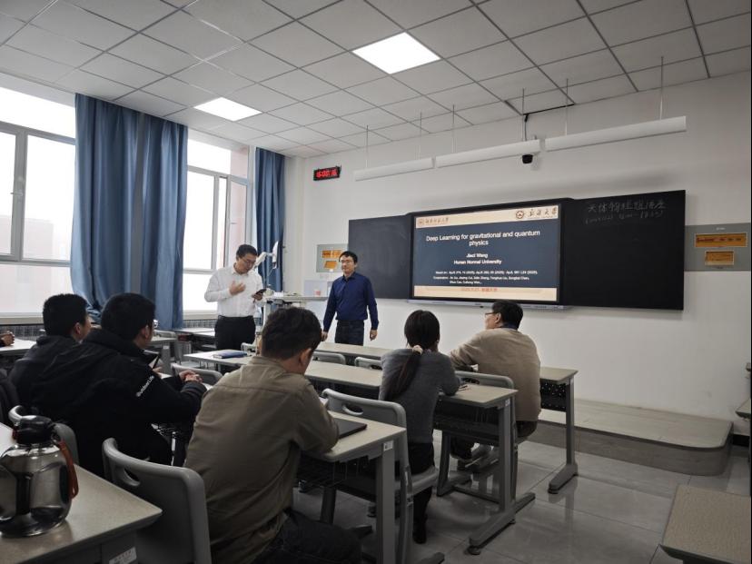 2025年11月27日下午16时,湖南师范大学教授、博士生导师,王接词教授,受邀到访新疆大学物理科学与技术学院开展学术交流。王接词教授在博达校区物理楼A414以《Deep Learning for black hole image generation and cosmological parameter estimation》为主题做了报告并进行了学术讨论。活动由物理学院主办,学院党委副书记兼院长吕国梁主持,北京师范大学马永革教授、新疆大学郭素芬老师以及天体物理课题组全体学生参与此次学术活动。