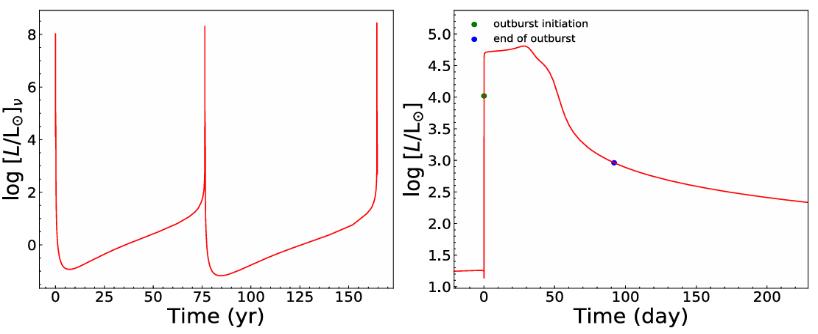 图3. T CrB新星爆发中中微子光度的时间演化预测